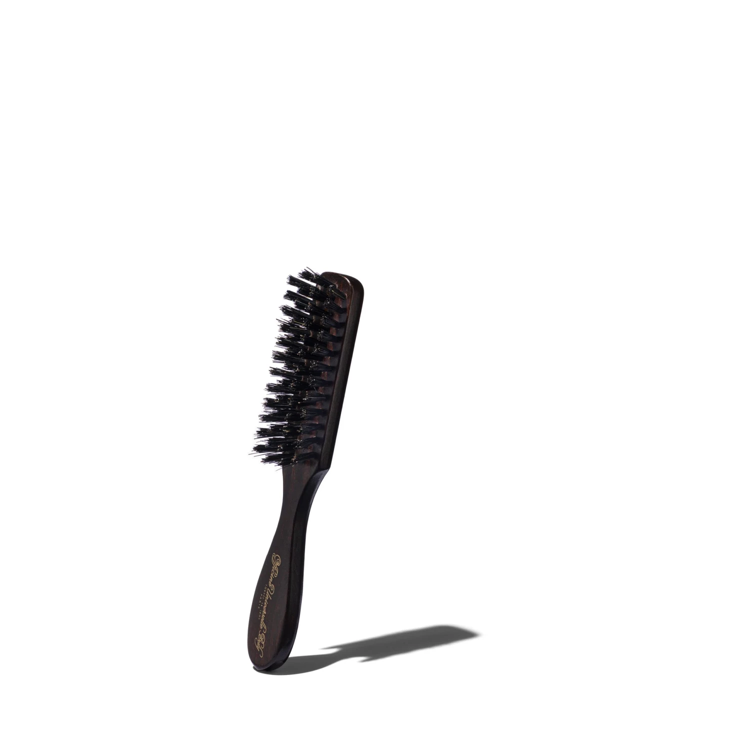 Parfaite à tous points de vue, cette brosse ravie le regard par la finesse de sa silhouette et apprivoise toutes les barbes en un coup de main. Légère et d’une taille médiane idéale, elle est l’accessoire indispensable pour démêler, lisser et entretenir tous les types de barbes, qu’elles soient de trois jours ou de mille nuits. Son manche taillé en bois de hêtre et teinté permet une prise en main parfaite tandis que sa brosse composée de quatre rangs de poils de sanglier prodigue au poil lustrage et ordre certain. Un brossage quotidien et minutieux de la barbe permet de stimuler sa croissance, diminuer l’inconvenant effet d’électricité statique ainsi qu’éloigner les impuretés. Et, le visage devient l’ambassadeur de l’élégance ordonnée.