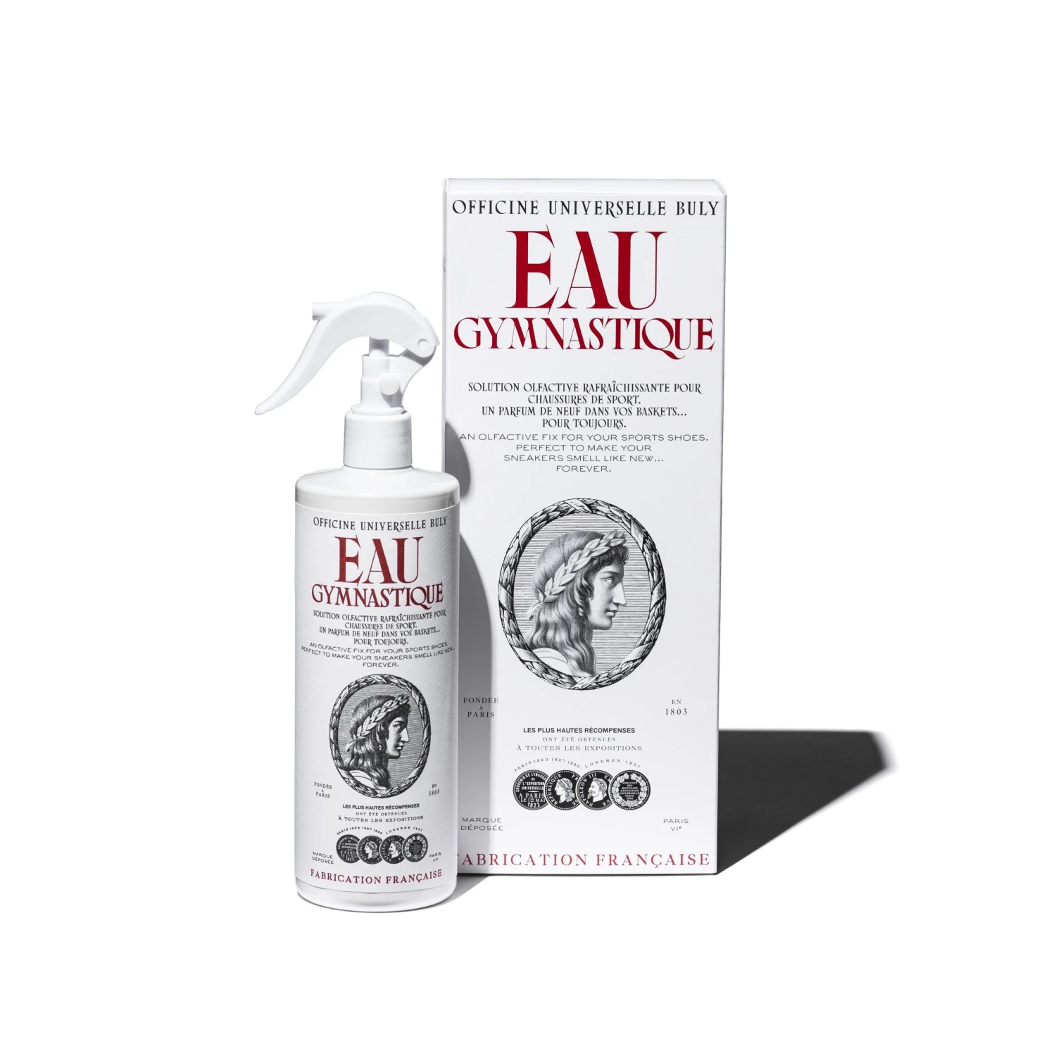 L’Officine Universelle Buly présente sa nouvelle invention : l’Eau Gymnastique, un parfum pour chaussures de sport. Elle possède une particularité étonnante, en redonnant aux chaussures un parfum que chacun se plaît à retrouver : l’odeur du neuf.