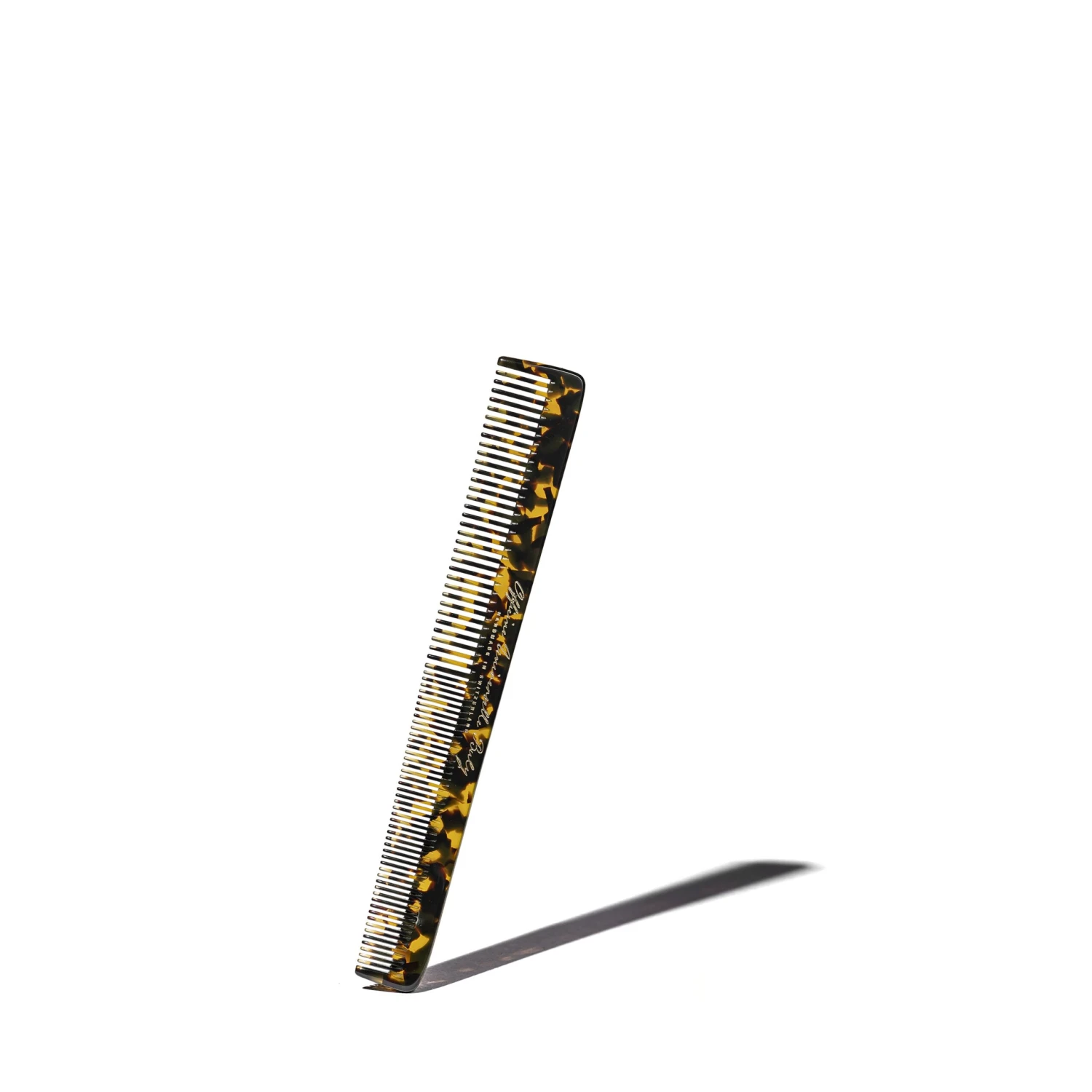 Insolite, ce peigne de l’Officine a pris des formes géométriques pour mieux amadouer les poils rebelles. Ses dents resserrées défilent le long du peigne d’un espacement large à fin, pour rendre le démêlage plus doux. De bonne taille et un peu moins large que l’Oracle, il se glisse aisément dans un sac et se décline en trois teintes : écailles de tortue, ivoire ou jaune ambré. Ses lignes parfaites légèrement triangulaires en font un des peignes les plus prisés des amateurs de belles choses, de curiosités et autres esthètes.