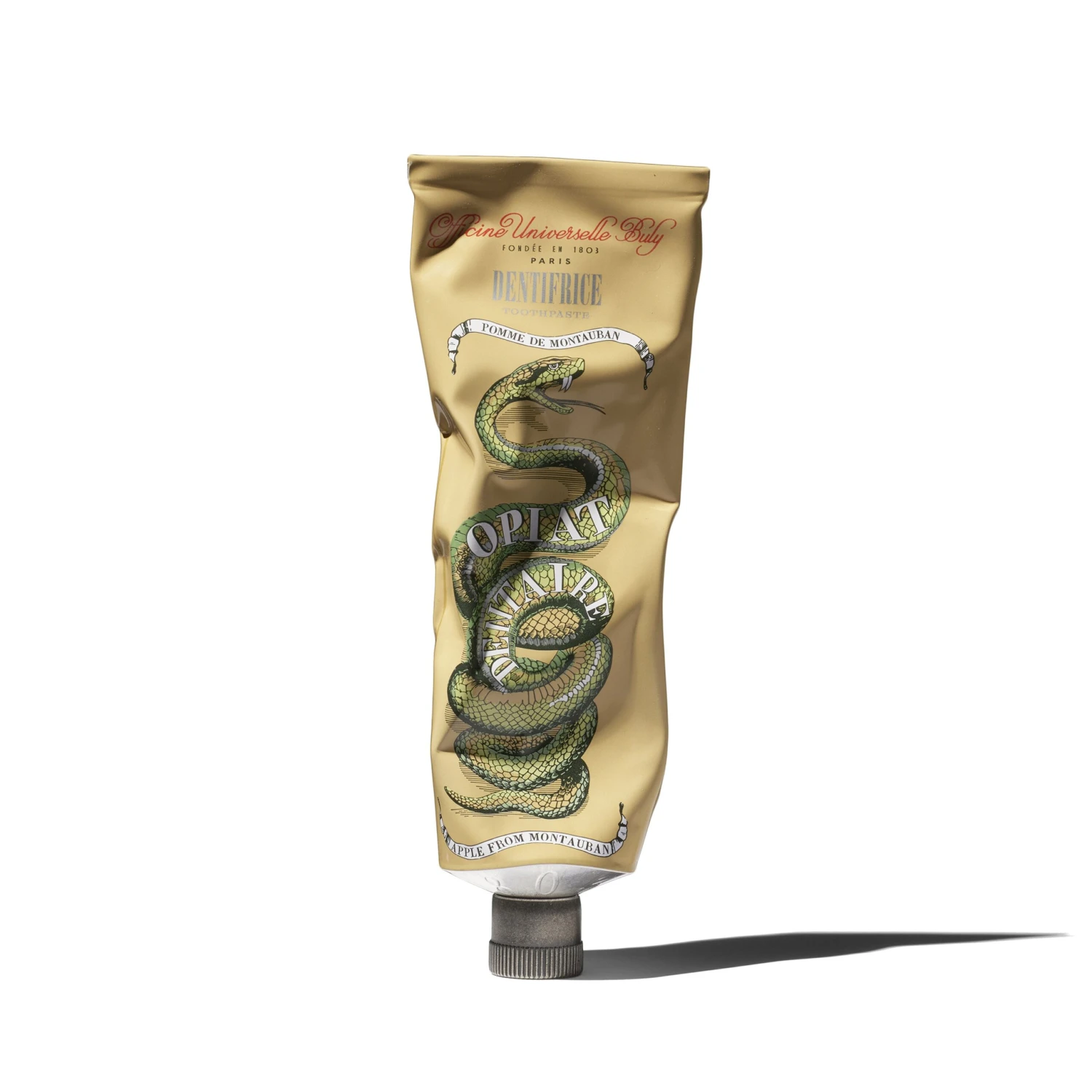 Le brossage des dents devient une étape plaisante en la compagnie des Opiats Dentaires de l’Officine Universelle Buly. Ne serait-ce que le nom, emprunté à celui des grandes heures de la France napoléonienne, témoigne de la généralisation du brossage des dents au XIXe siècle. Pour éviter de gâter la bouche et l’haleine, cette pâte dentifrice est composée d’une eau thermale aux vertus bienfaisantes : celle de Castéra-Verduzan, d’où jaillit sa source, fait sienne force de magnésium, calcium et sulfates. Réputée depuis l’Antiquité pour soigner les maux, elle est de nos jours la seule station thermale agréée par le Ministère de la Santé pour le traitement des affections des muqueuses bucco-linguales et des parodontopathies.